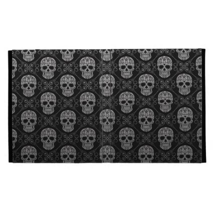 Grey and Black Sugar Skull Pattern iPad Folio Cases